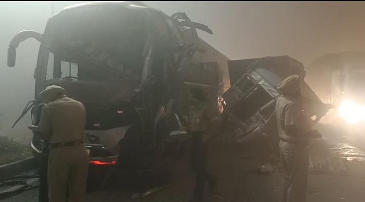 ਬੀਤੀ ਰਾਤ 11 ਵਜੇ ਦੇ ਕਰੀਬ ਸੰਘਣੀ ਧੁੰਦ ਕਾਰਨ ਫਿਲੌਰ ਬੱਸ ਅੱਡੇ ਤੋਂ ਲੁਧਿਆਣਾ ਵੱਲ ਜਾਣ ਵਾਲੀ ਸੜਕ ‘ਤੇ ਇੱਕ ਪ੍ਰਾਈਵੇਟ ਬੱਸ ਐਨ ਐਲ 02 ਬੀ 6711 ਅਤੇ ਇੱਕ ਟਰੱਕ ਵਿਚਕਾਰ ਮੋੜ ਕੱਟਦੇ ਸਮੇਂ ਟੱਕਰ ਹੋ ਗਈ। ਜਿਸ ਕਾਰਨ ਟਰੱਕ ਬੁਰੀ ਤਰ੍ਹਾਂ ਨੁਕਸਾਨਿਆ ਗਿਆ ਅਤੇ ਬੱਸ ਨੂੰ ਵੀ ਨੁਕਸਾਨ ਪੁੱਜਾ। ਇਹ ਜਾਣਕਾਰੀ ਦਿੰਦੇ ਹੋਏ ਸੜਕ ਸੁਰੱਖਿਆ ਫੋਰਸ ਦੇ ਥਾਣੇਦਾਰ ਜਸਵਿੰਦਰ ਸਿੰਘ ਨੇ ਦੱਸਿਆ ਕਿ ਇਹ ਦੁਰਘਟਨਾ ਰਾਤ 11 ਵਜੇ ਦੇ ਕਰੀਬ ਸੰਘਣੀ ਧੁੰਦ ਕਾਰਨ ਫਿਲੌਰ ਤੋਂ ਲੁਧਿਆਣਾ ਜਾਣ ਵਾਲੇ ਬੱਸ ਅੱਡੇ ‘ਤੇ ਵਾਪਰੀ ਜਿਸ ਕਾਰਨ ਦੋਵੇਂ ਵਾਹਨ ਬੁਰੀ ਤਰ੍ਹਾਂ ਨੁਕਸਾਨੇ ਗਏ ਬੱਸ ਵਿੱਚ ਸਵਾਰ 6 ਤੋਂ 7 ਸਵਾਰੀਆਂ ਨੂੰ ਮਾਮੂਲੀ ਸੱਟਾਂ ਵੱਜੀਆਂ। ਜੋ ਫਸਟ ਏਡ ਲੈਣ ਤੋਂ ਬਾਅਦ ਆਪਣ-ਆਪਣੇ ਘਰਾਂ ਨੂੰ ਰਵਾਨਾ ਹੋ ਗਏ। ਦੋਵੇਂ ਵਾਹਨਾਂ ਨੂੰ ਇੱਕ ਪਾਸੇ ਕਰਕੇ ਟਰੈਫਿਕ ਚਾਲੂ ਕਰ ਦਿੱਤਾ ਗਿਆ।