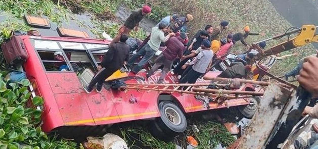 ਬਠਿੰਡਾ ’ਚ ਵੱਡਾ ਹਾਦਸਾ ਵਾਪਰਿਆ ਹੈ। ਬਠਿੰਡਾ ਦੇ ਜੀਵਨ ਸਿੰਘ ਵਾਲਾ ਨੇੜੇ ਸਵਾਰੀਆਂ ਨਾਲ ਭਰੀ ਬੱਸ ਗੰਦੇ ਨਾਲੇ ’ਚ ਡਿੱਗੀ ਗਈ ਹੈ। ਹਾਦਸਾ ’ਚ ਦੋ ਲੋਕਾਂ ਦੀ ਮੌਤ ਹੋ ਗਈ ਹੈ ਅਤੇ ਕਈ ਲੋਕਾਂ ਦੇ ਜ਼ਖ਼ਮੀ ਹੋਣ ਦਾ ਖ਼ਦਸ਼ਾ ਪ੍ਰਗਟਾਇਆ ਜਾ ਰਿਹਾ ਹੈ। ਫ਼ਿਲਹਾਲ ਕੋਈ ਜਾਨੀ ਨੁਕਸਾਨ ਦੀ ਕੋਈ ਜਾਣਕਾਰੀ ਪ੍ਰਾਪਤ ਨਹੀਂ ਹੋਇਆ। ਇਹ ਬੱਸ ਨਿੱਜੀ ਕੰਪਨੀ ਦੀ ਦੱਸੀ ਜਾ ਰਹੀ ਹੈ ਜੋ ਹਾਦਸੇ ਦਾ ਸ਼ਿਕਾਰ ਹੋ ਗਈ ਹੈ। ਪ੍ਰਾਪਤ ਜਾਣਕਾਰੀ ਅਨੁਸਾਰ ਬੱਸ ਨਾਲੇ ਵਿਚ ਡਿੱਗ ਗਈ ਹੈ। ਮੌਕੇ ’ਤੇ ਮੌਜੂਦ ਲੋਕਾਂ ਵੱਲੋਂ ਸਵਾਰੀਆਂ ਨੂੰ ਬੱਸ ਵਿਚੋਂ ਬਾਹਰ ਕੱਢਿਆ ਜਾ ਰਿਹਾ ਹੈ। ਹਾਦਸਾ ਪੁਲ ’ਤੇ ਰੇਲਿੰਗ ਨਾ ਹੋਣ ਕਾਰਨ ਵਾਪਰਿਆ ਹੈ।