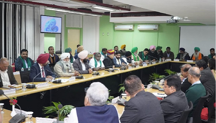 ਕੇਂਦਰ ਸਰਕਾਰ ਨਾਲ ਕਿਸਾਨਾਂ ਦੀ ਅੱਜ ਮੀਟਿੰਗ ਹੋਣ ਵਾਲੀ ਹੈ। ਇਸ ਮੀਟਿੰਗ ਵਿਚ 28 ਮੈਂਬਰੀ ਕਿਸਾਨਾਂ ਦਾ ਵਫਦ ਸ਼ਾਮਲ ਹੋਵੇਗਾ। ਮਰਨ ਵਰਤ ‘ਤੇ ਬੈਠੇ ਜਗਜੀਤ ਸਿੰਘ ਡੱਲੇਵਾਲ ਵੀ ਇਸ ਮੀਟਿੰਗ ਦਾ ਹਿੱਸਾ ਬਣਨਗੇ। 14 ਮੈਂਬਰੀ ਕਿਸਾਨ ਮਜ਼ਦੂਰ ਮੋਰਚਾ (KMM) ਤੇ 14 ਮੈਂਬਰ ਸੰਯੁਕਤ ਕਿਸਾਨ ਮੋਰਚਾ ਗੈਰ-ਸਿਆਸੀ (SKM) ਦੇ ਸ਼ਾਮਲ ਹੋਣਗੇ। ਮੀਟਿੰਗ ਵਿਚ ਜਗਜੀਤ ਸਿੰਘ ਡੱਲੇਵਾਲ 28 ਕਿਸਾਨ ਆਗੂ ਸ਼ਾਮਲ ਹੋਣਗੇ। ਖੇਤੀਬਾੜੀ ਮੰਤਰੀ ਗੁਰਮੀਤ ਸਿੰਘ ਖੁੱਡੀਆਂ ਵੀ ਮੀਟਿੰਗ ਵਿਚ ਮੌਜੂਦ ਰਹਿਣਗੇ। ਬੈਠਕ ਸ਼ਾਮ 5.30 ਵਜੇ ਸੈਕਟਰ 26, ਚੰਡੀਗੜ੍ਹ ਵਿਖੇ ਹੋਵੇਗੀ। ਮੀਟਿੰਗ ਵਿਚ MSP ਸਣੇ ਕਿਸਾਨਾਂ ਦੀਆਂ ਹੋਰ ਮੰਗਾਂ ‘ਤੇ ਚਰਚਾ ਹੋਵੇਗੀ । ਕਿਸਾਨਾਂ ਨੇ ਚੇਤਾਵਨੀ ਦਿੱਤੀ ਹੈ ਕਿ ਜੇਕਰ ਗੱਲਬਾਤ ਸਿਰੇ ਨਹੀਂ ਚੜ੍ਹਦੀ ਤਾਂ 25 ਫਰਵਰੀ ਨੂੰ ਦਿੱਲੀ ਮਾਰਚ ਕਰਨਗੇ। ਪ੍ਰੈੱਸ ਕਾਨਫਰੰਸ ਕਰਕੇ ਕਿਸਾਨਾਂ ਨੇ ਇਸ ਗੱਲ ‘ਤੇ ਜ਼ੋਰ ਦਿੱਤਾ ਕਿ ਕੇਂਦਰ ਸਰਕਾਰ ਦੀ ਖੇਤੀ ਬਾਜ਼ਾਰ ਨੀਤੀ ਦੇ ਮਸੌਦੇ ਨੂੰ ਉਨ੍ਹਾਂ ਦੇ ਮੰਗ ਪੱਤਰ ਵਿਚ ਸ਼ਾਮਲ ਕੀਤਾ ਜਾਣਾ ਚਾਹੀਦਾ ਹੈ।
