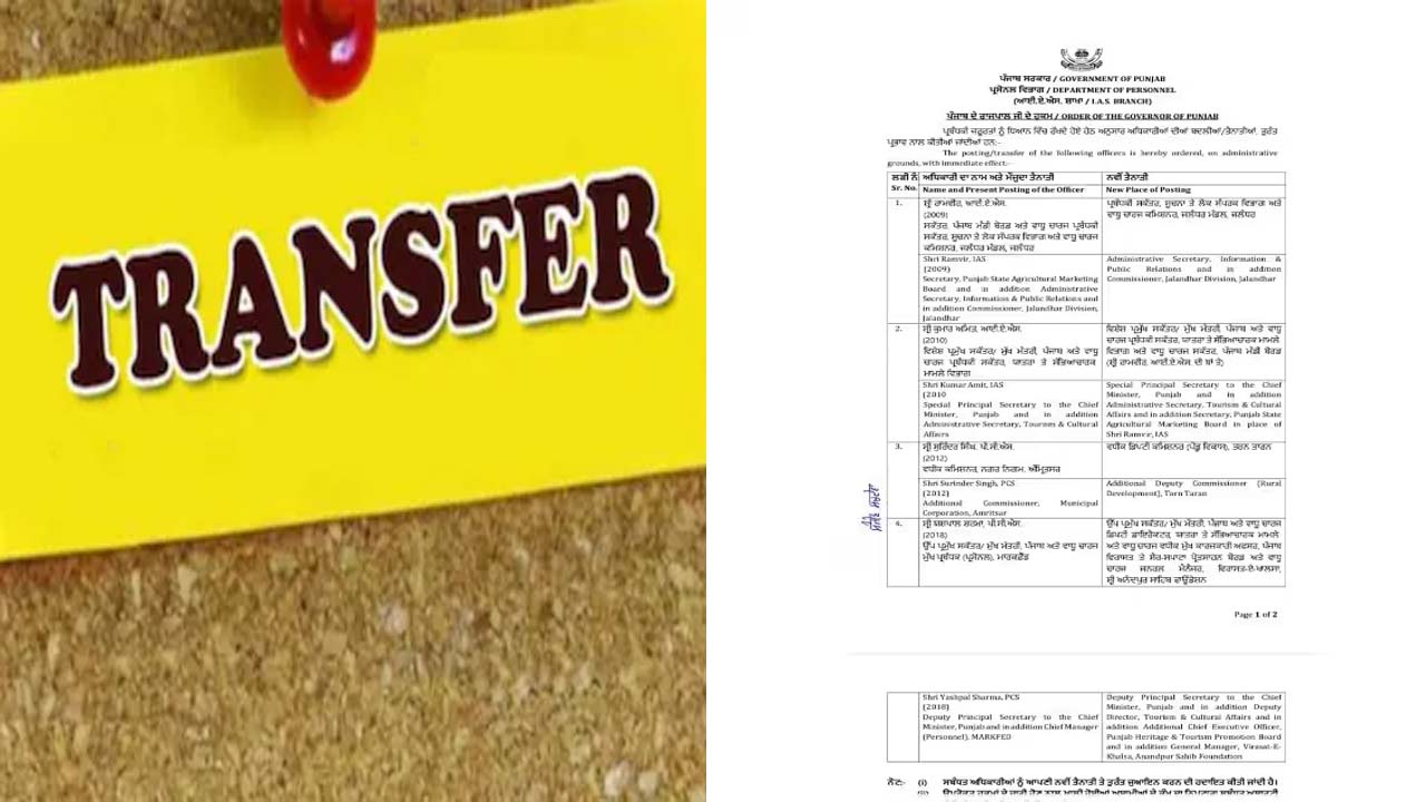 ਪੰਜਾਬ ਸਰਕਾਰ ਵੱਲੋਂ ਮੁੜ ਅਧਿਕਾਰੀਆਂ ਦੀਆਂ ਬਦਲੀਆਂ ਅਤੇ ਤਾਇਨਾਤੀਆਂ ਕੀਤੀਆਂ ਗਈਆਂ ਹਨ।