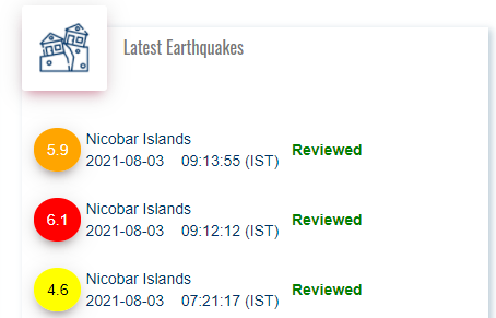 ਪੋਰਟ ਬਲੇਅਰ, 3 ਅਗਸਤ – ਨਿਕੋਬਾਰ ਦੀਪ ਸਮੂਹ ‘ਚ ਅੱਜ ਸਵੇਰੇ 3 ਵਾਰ ਭੁਚਾਲ ਦੇ ਝਟਕੇ ਮਹਿਸੂਸ ਕੀਤੇ ਗਏ। ਸਵੇਰੇ 7.21 ‘ਤੇ ਆਏ ਭੂਚਾਲ ਦੀ ਤੀਬਰਤਾ 4.6 ਮਾਪੀ ਗਈ, 9.12 ‘ਤੇ ਆਏ ਭੂਚਾਲ ਦੀ ਤੀਬਰਤਾ 6.1 ਅਤੇ 9.13 ‘ਤੇ ਆਏ ਭੂਚਾਲ ਦੀ ਤੀਬਰਤਾ 5.9 ਮਾਪੀ ਗਈ।